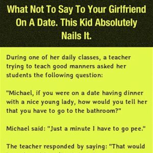 During one of her daily classes, a teacher trying to teach good manners asked her students the following question: “Michael, if you were on a date having…