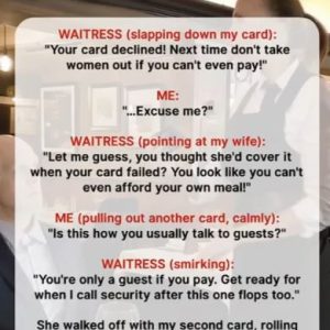 I handed over another card while she rolled her eyes, still smirking in front of strangers. When it cleared, she dropped the check with fake cheer: “You’re…