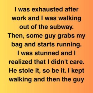 I was exhausted after work, dragging my feet out of the subway, when a man suddenly snatched my bag and bolted. For a moment, I froze. Then,…