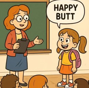 On her very first day at a new school, a little girl walked into class. The teacher smiled and asked, “Sweetie, what’s your name?” The girl proudly replied, “Happy Butt.” The…
