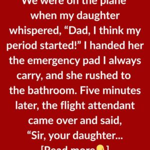 While on the plane, my daughter whispered, “Dad, I think my period started!” I handed her the emergency pad I always carry, and she rushed to the…