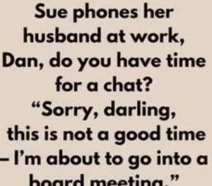 Sue phones her husband at work, “Dan, do you have time for a chat?” “Sorry, darling, this is not a good time – I’m about to go…