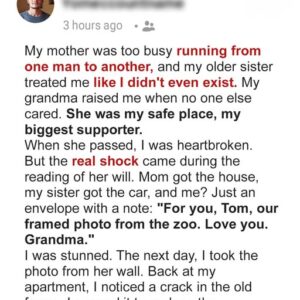 When my grandmother, Grace, died, my mother took the house and my sister the car. At the reading, all I received was a photo of Grandma and…