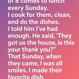 Every Sunday, Mia’s house turned into a bustling gathering spot for her husband’s family of eight. She would wake up early to prepare their favorite dishes, set…