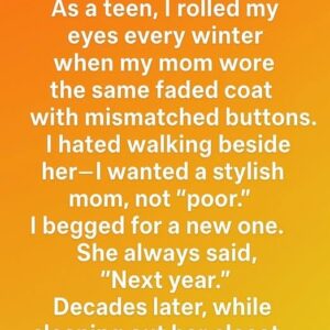 As a teen, I rolled my eyes every winter when my mom wore the same faded coat with mismatched buttons. I hated walking beside her—I wanted a…