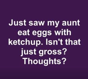 “Caught my aunt adding ketchup to her eggs. Yikes! What do you think?”