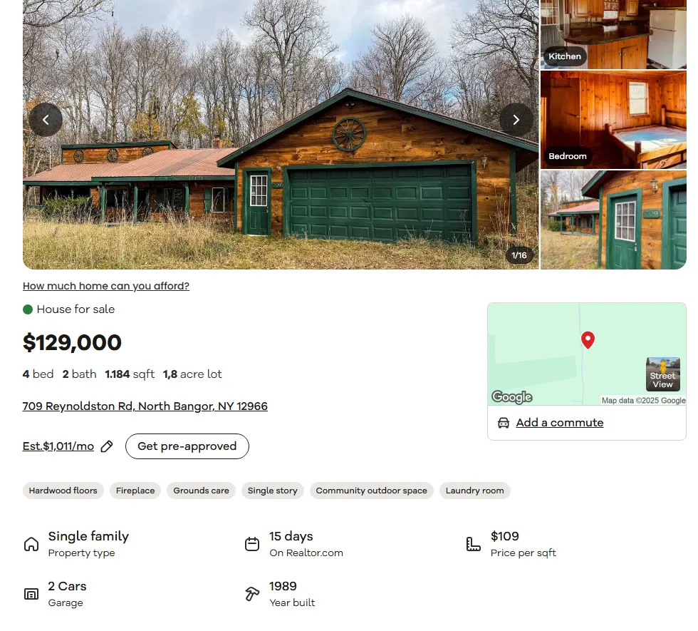 A two-car attached garage, additional open parking, and a peaceful view of surrounding trees complete the setting. For those seeking a homestead, weekend retreat, or simple life in nature, this rustic 1989 ranch offers comfort, charm, and wide-open quiet.