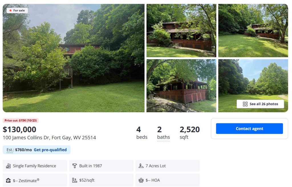 This property offers a two-story home built in 1987, nestled in a peaceful rural setting with seven acres of flat and sloping land. 100 James Collins Dr, Fort Gay, WV 25514 includes four bedrooms and two bathrooms, with an interior area of approximately 2,520 square feet, making it suitable for families looking for space and flexibility. The living room is large and naturally lit, where you can create different environments as needed — from a relaxation area to a social space for the children.