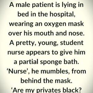 A male patient lay in a hospital bed with an oxygen mask over his face. A young, pretty student nurse came in to give him a partial…