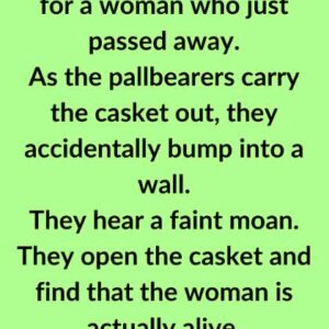 She lives for 10 more years and then dies. They have another funeral for her. At the end of the service, the pallbearers carry out the casket….