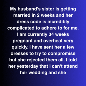 At 34 weeks pregnant, the narrator faced an impossible dress code for her sister-in-law Anya’s outdoor August wedding in Arizona—long pastel dresses with sleeves, no cool tones,…