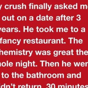 Story 1: After three years of crush-worthy silent hopes, he finally asked me out. The date was perfect—until he vanished to the bathroom and never came back….
