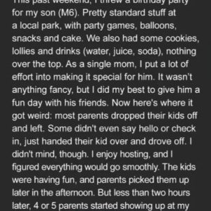 I hosted a modest birthday celebration for my six-year-old son, Asher, at a local park. There were balloons, streamers, sparkly vanilla star cookies, and a simple chocolate…