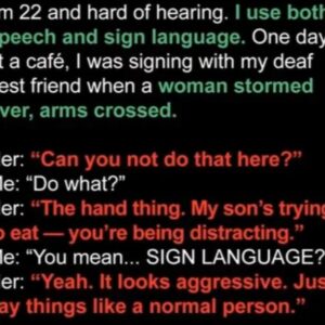 I’m hard of hearing, and my best friend Maya is completely deaf. One afternoon at our favorite café, we were happily chatting in sign language when an…
